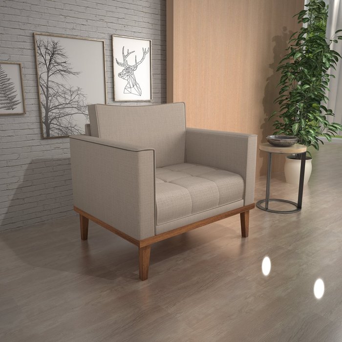 Poltrona Decorativa Madeira Maciça Linho Luca Bom Pastor Linho Bege