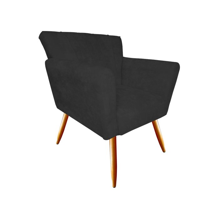 Poltrona Decorativa Maya Suede Preto Pés Madeira Mz Decor