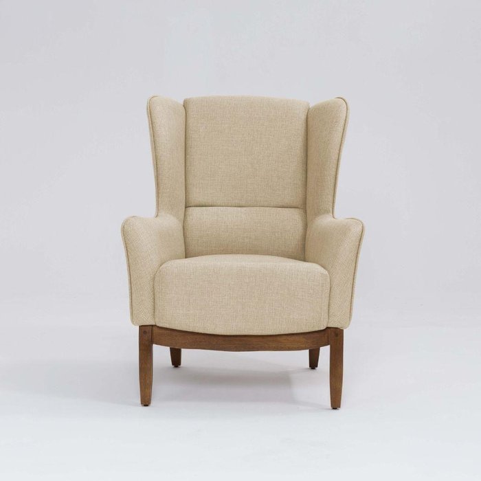 Poltrona Decorativa Milena Base Madeira Linho Marfím Marfim