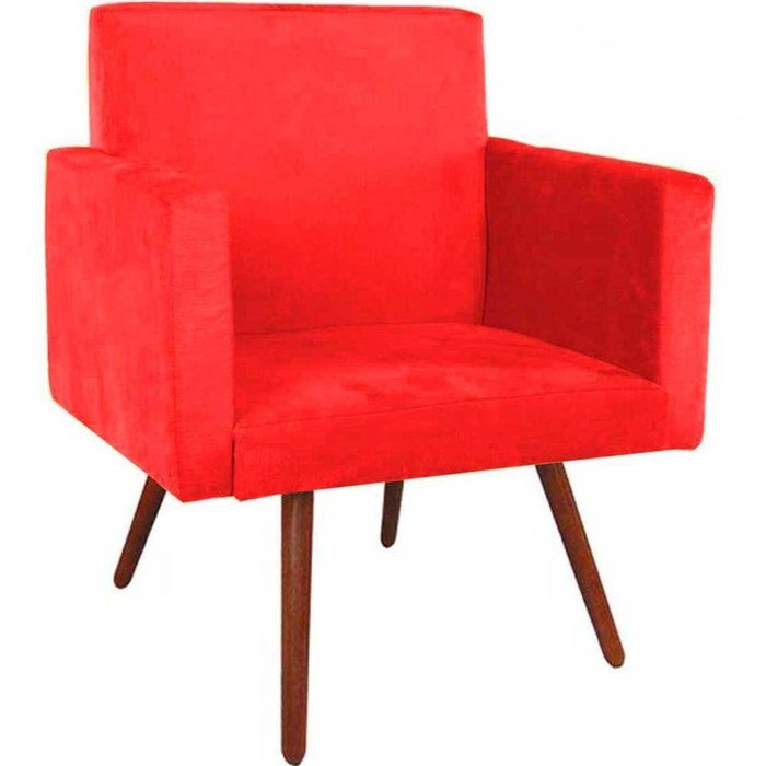 Poltrona Decorativa Nina Pé Palito Suede Vermelho Vermelho