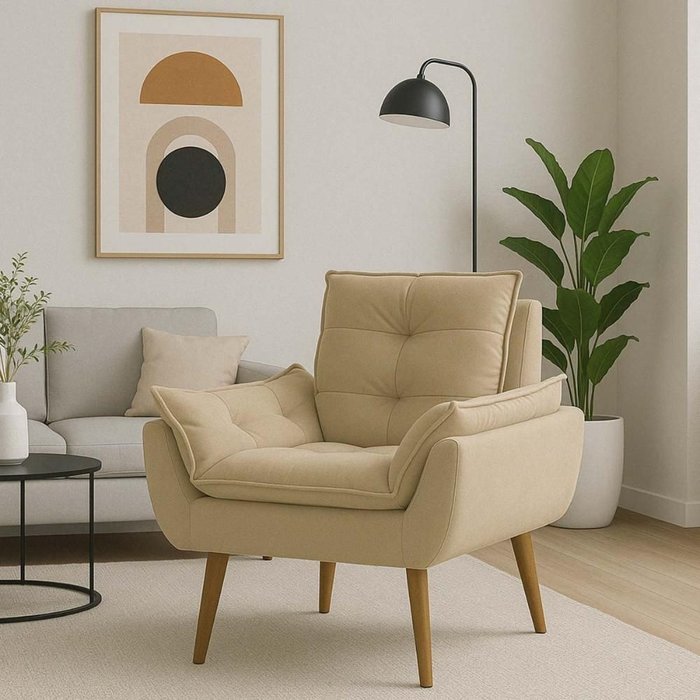 Poltrona Decorativa Opala para Sala Confortável Arapongas Bege