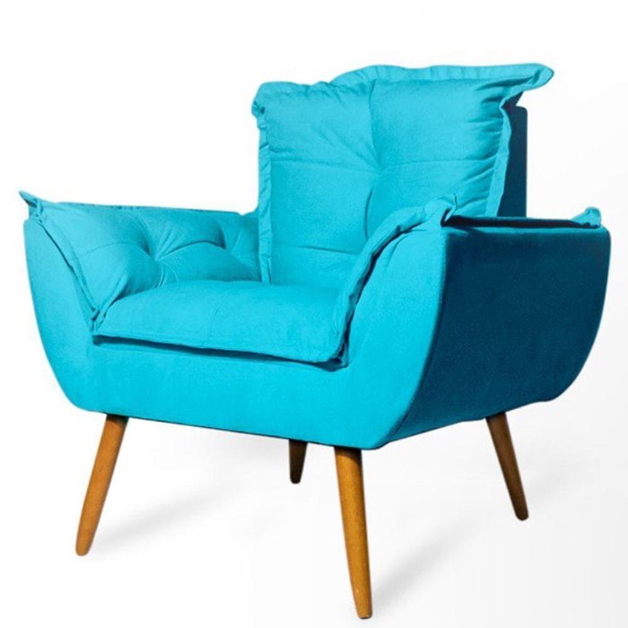 Poltrona Decorativa Opala Suede Azul Tiffany Rocha Móveis