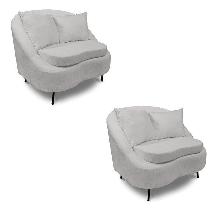 Poltrona Decorativa Orgânica Pé Ferro Pto Kit 2 Zaya Bouclê Cinza C05 - D'Rossi