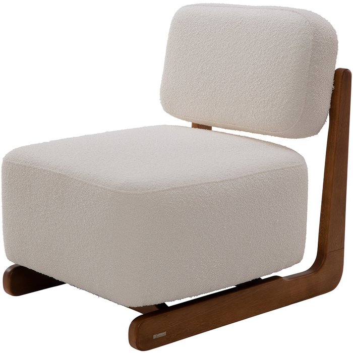 Poltrona Decorativa Orgânica Sala Living Pés Madeira Luiza L02 Bouclê Creme - Lyam Decor Creme