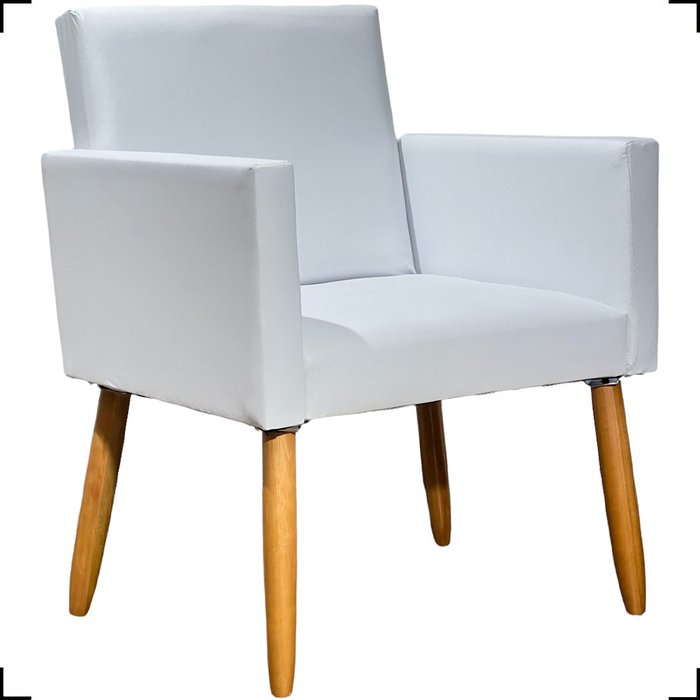 Poltrona Decorativa Para Recepção Manicure Sala De Espera Escritório Consultório Corino Branco