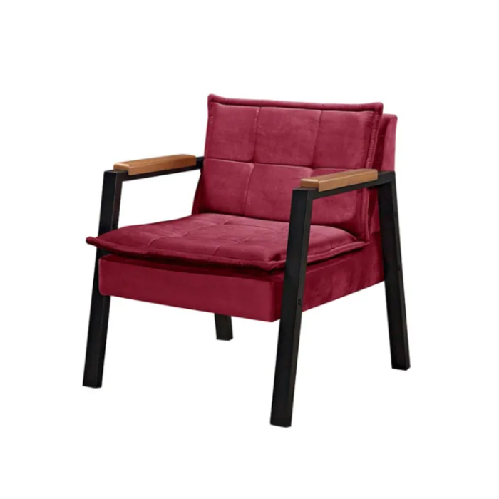 Poltrona Decorativa Para Sala Ou Escritório Estilo Industrial Fortaleza Sanna Decor Veludo Bordo