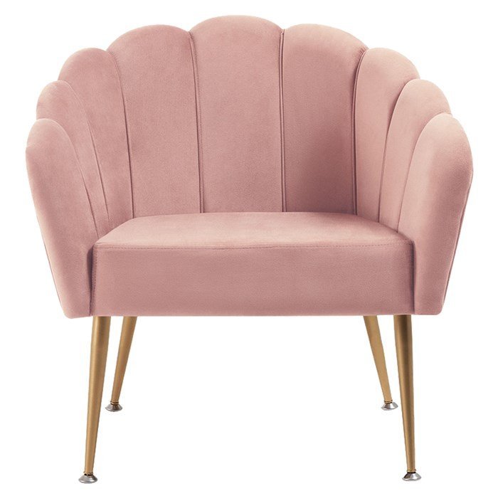 Poltrona Decorativa Pes Aço Dourado 7049 Veludo Rosa Dmobiliario