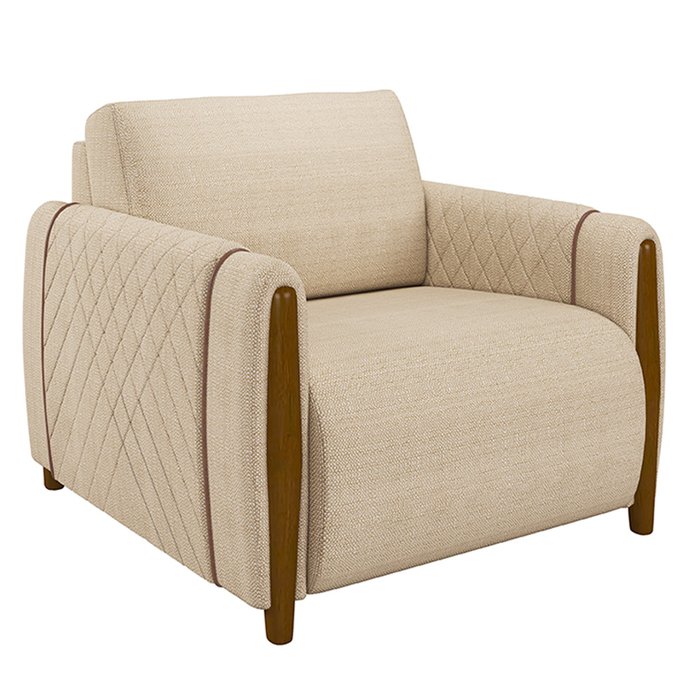 Poltrona Decorativa Pés Madeira Maceió Linho Champagne - Gran Belo Champagne