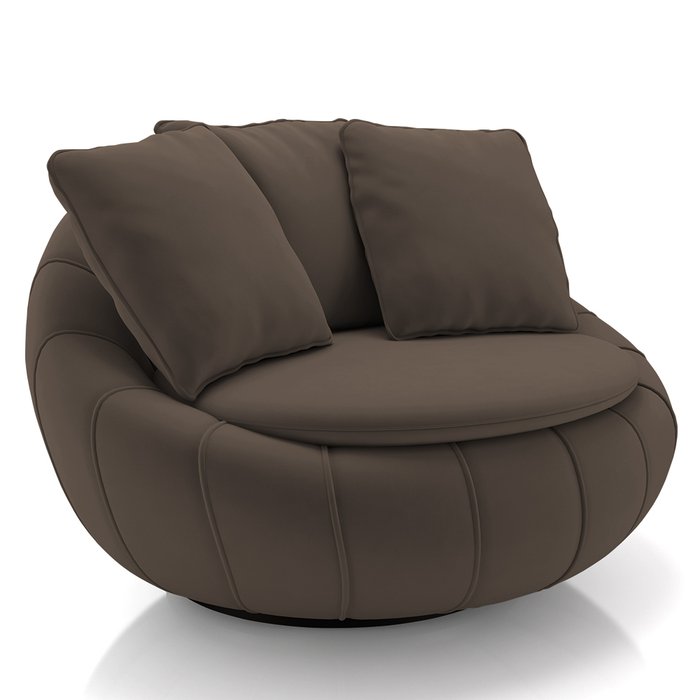 Poltrona Decorativa Redonda Giratória com Almofadas Saphire M22 Veludo Marrom - Mpozenato