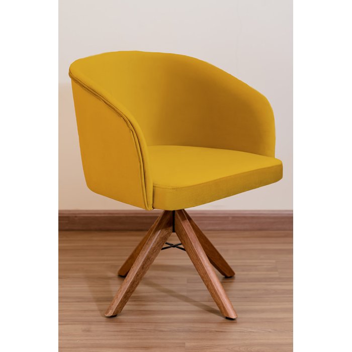 Poltrona Decorativa Redonda Pé Giratório de Madeira Cor:amarelo