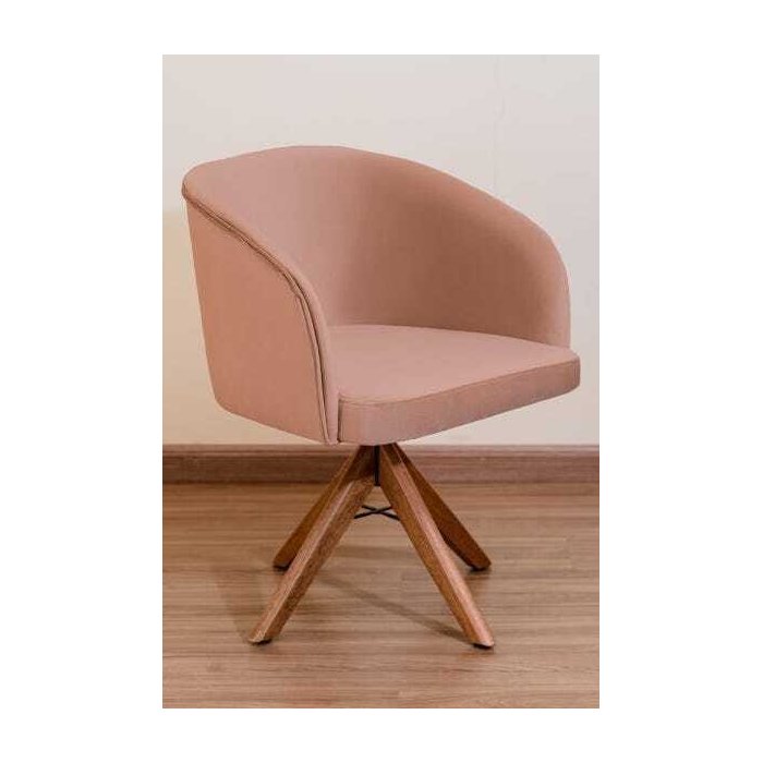 Poltrona Decorativa Redonda Pé Giratório de Madeira:rosa