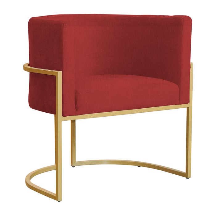 Poltrona Decorativa Sala de Estar Luana Base Gold Suede Vermelho