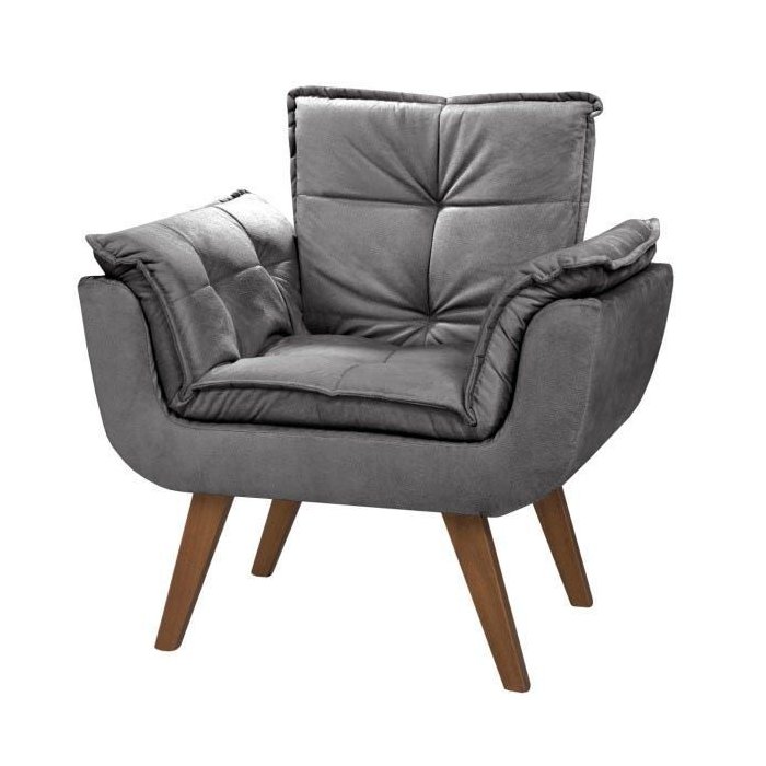 Poltrona Decorativa Sala Recepção Escritório Opala Grafite 1 Lugar Cinza