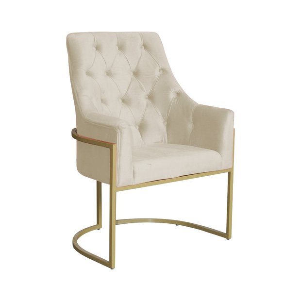 Poltrona Decorativa Vick Base em Metal Dourada Veludo Bege - Belliv Decor