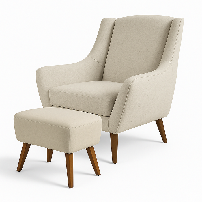 Poltrona Dekorien Juliet Linho Cru com Pés com Puff Decoração