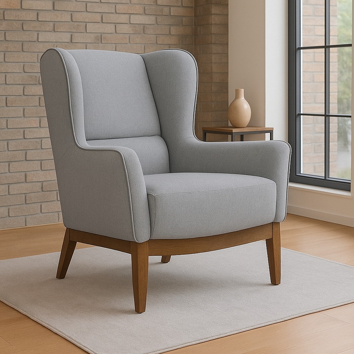 Poltrona Dekorien Milena Linho Cinza Elefante Alto Acabamento