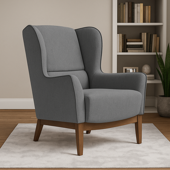 Poltrona Dekorien Milena Linho Cinza Escuro Alto Acabamento