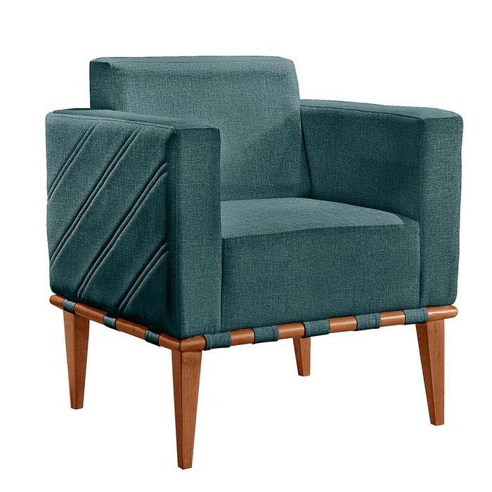 Poltrona Delly Madeira Maciça Castellar Móbile Linho Azul Azul