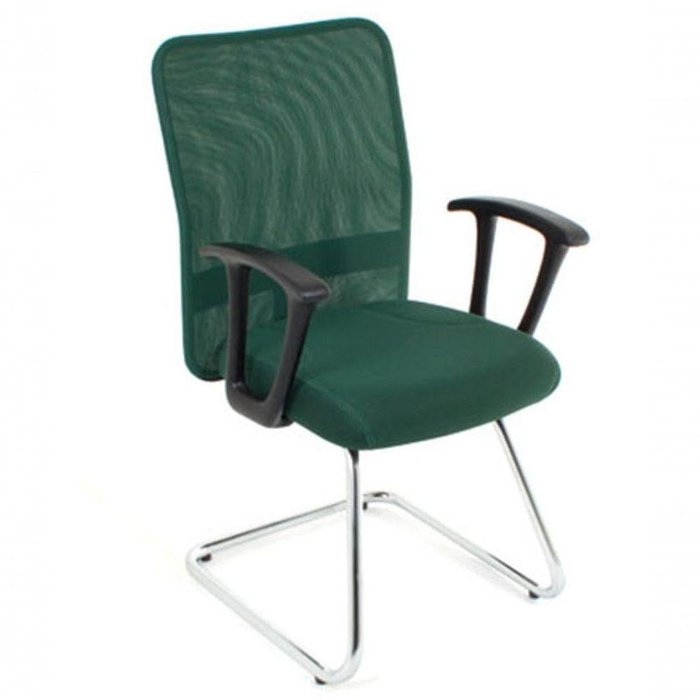 Poltrona Diretor Base Fixa Cromada Tela Mesh Verde
