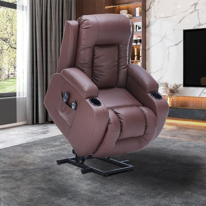 Poltrona Do Papai Lift Sala De Estar Reclinável Austin Elétrica Aquecimento Massagem Pu Marrom Chocolate G94 - Gran Belo