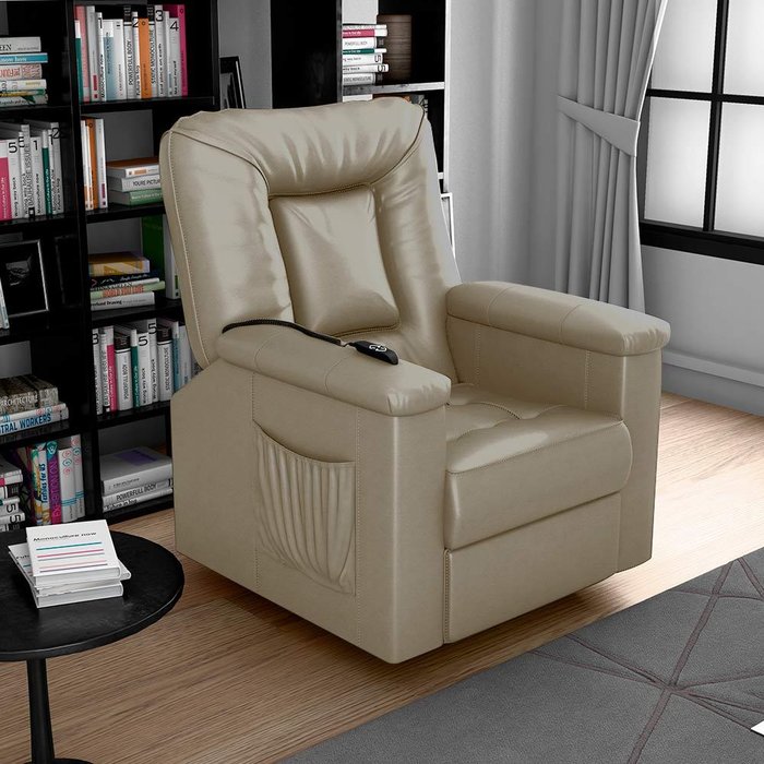 Poltrona do Papai Motorizada com Controle Remoto Corino Bege Porsche Matrix