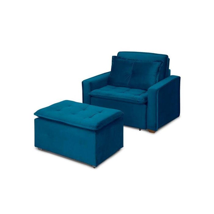 Poltrona do Papai Reclinável com Puff Filadélfia Veludo Azul Lux - Meu Estofado