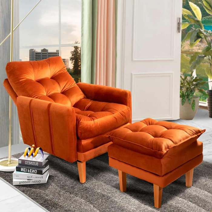 Poltrona Do Papai Reclinável Com Puff Veludo Laranja Veneza Boutique Konforto