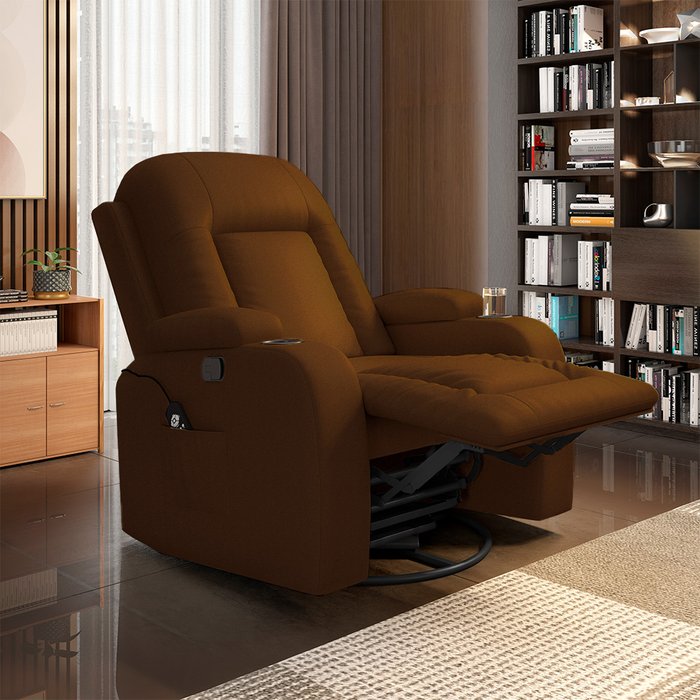 Poltrona do Papai Reclinável Giratória e Balanço Sala de Cinema Crihs com Massagem e Aquecimento PU Caramelo G23 - Gran Belo