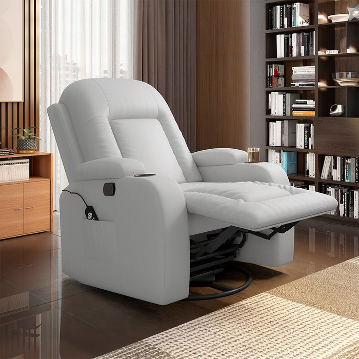 Poltrona do Papai Reclinável Giratória e Balanço Sala de Cinema Crihs com Massagem e Aquecimento PU Branco G23 - Gran Belo