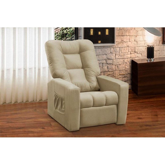 Poltrona do Papai Reclinável Itália Corino Bege Adonai Estofados Bege