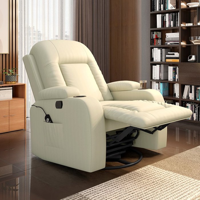Poltrona do Papai Reclinável Massagem e Aquecimento Giratório Balanço 2 Porta Copos Mark Pu Bege G31