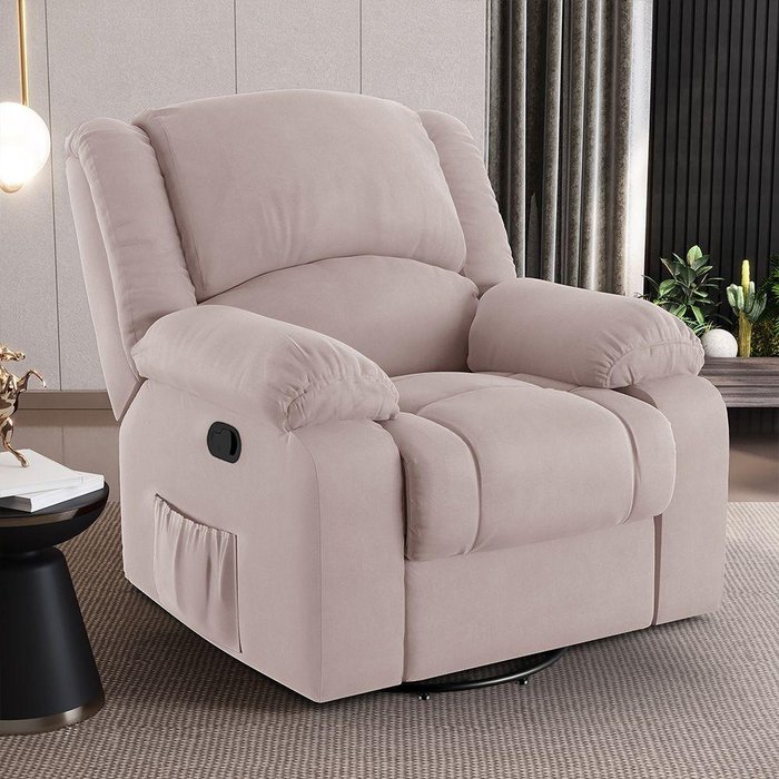 Poltrona Do Papai Reclinável Sala De Cinema Madrid Glider Manual Giratória Veludo Rosê G23