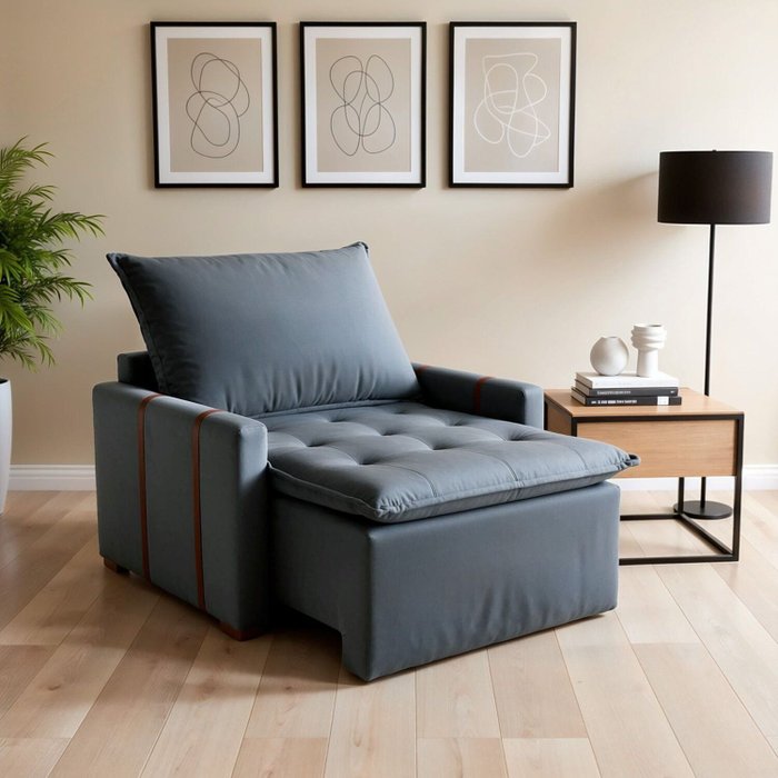 A nossa Poltrona do Papai é o convite perfeito para relaxar com conforto todos os dias! Com design elegante e um toque clássico que combina com qualquer ambiente, ela une funcionalidade e bem-estar. Seu mecanismo retrátil e reclinável permite ajustar a posição ideal para assistir TV, ler ou simplesmente tirar um bom cochilo. Além disso, seu estofamento macio e estrutura garantem aquele abraço de conforto que transforma o momento de descanso em puro prazer. Seja na sala, no quarto ou no home office, a poltrona que vira cama é a peça que vai deixar seu espaço mais aconchegante e cheio de personalidade.