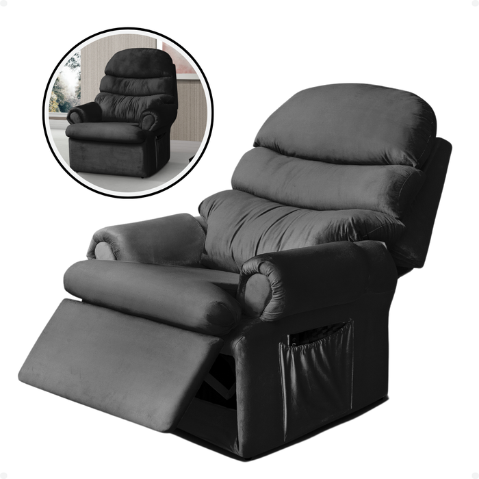 Poltrona do Papai Sala Decoração Descanso Reclinável Corino Conforto Suede Veludo Preto