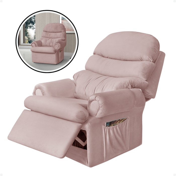Poltrona do Papai Suede Veludo Rosa para Descanso Conforto Reclinável Rosa
