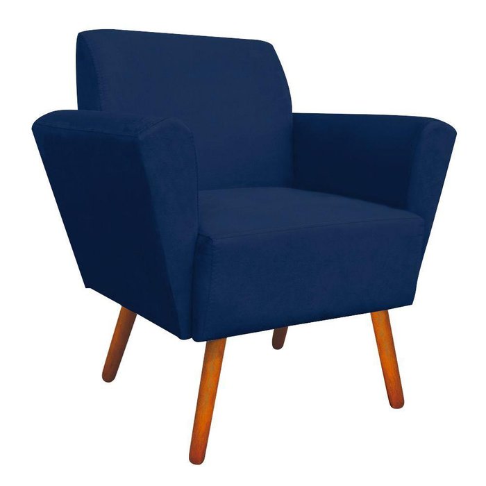 Poltrona Dora Suede Pés Palito Castanho D´rossi -azul Marinho