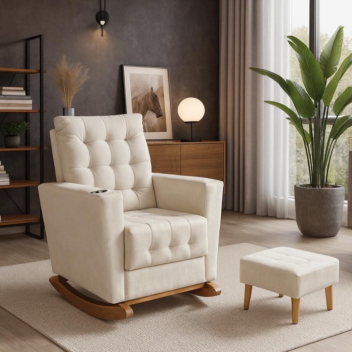 Poltrona Duna Amamentação Balanço e Puff Begeclaro Begeclaro