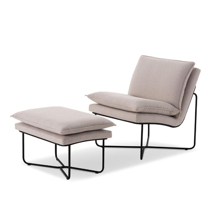 Poltrona e Puff Estofados para Sala de Estar com Base Aço Cor:boucle Bege 222 boucle Bege 222