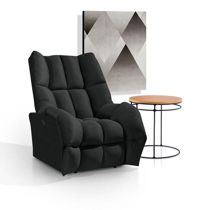 Poltrona Elétrica Rayka Para Sala De Estar Veludo Preto Base Em Ferro - Cor: Preto