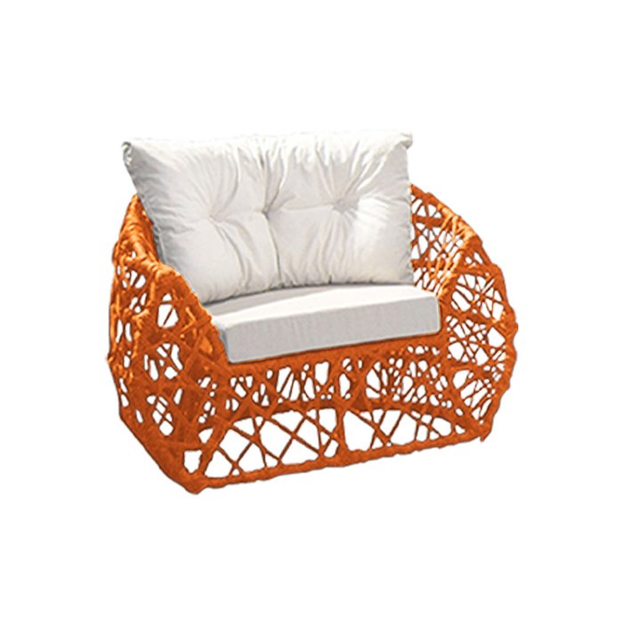 Poltrona em Aço e Corda Náutica Terracota Aruá Assento e Almofadas Courino Branco LARANJA