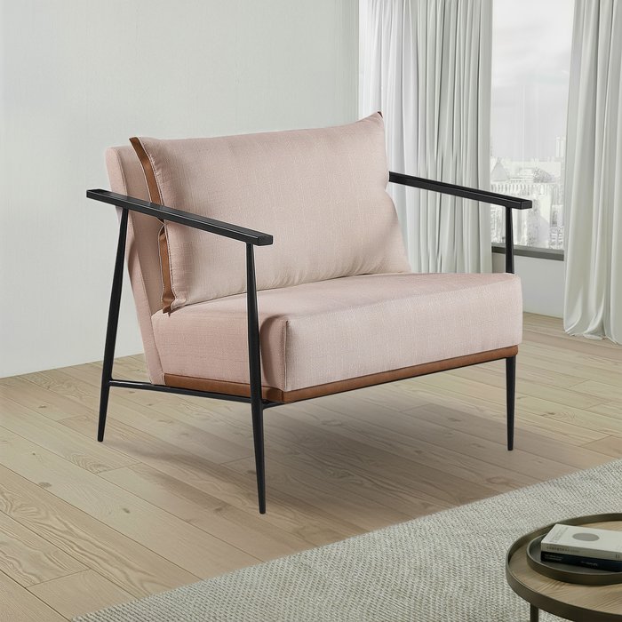 Poltrona em Estrutura de Metal, Estofada e Almofada Inclusa Ferco Bege Claro
