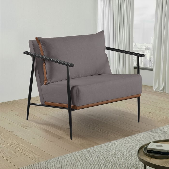 Poltrona em Estrutura de Metal, Estofada e Almofada Inclusa Ferco Cinza