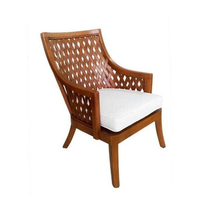 Poltrona em Madeira e Rattan Assento Estofado Marrom