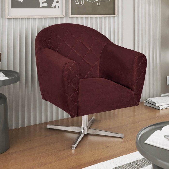 Poltrona em Suede Base Giratória de Metal Herrera Bordô