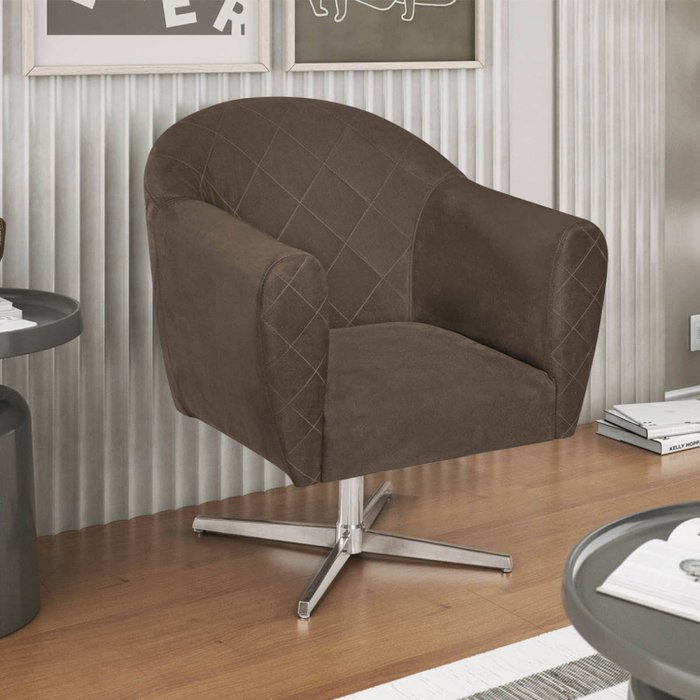 Poltrona em Suede Base Giratória de Metal Herrera Marrom