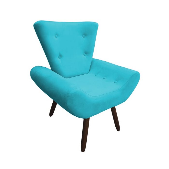 Poltrona Emanuelle Pés Palito Tabaco Suede Azul Tiffany