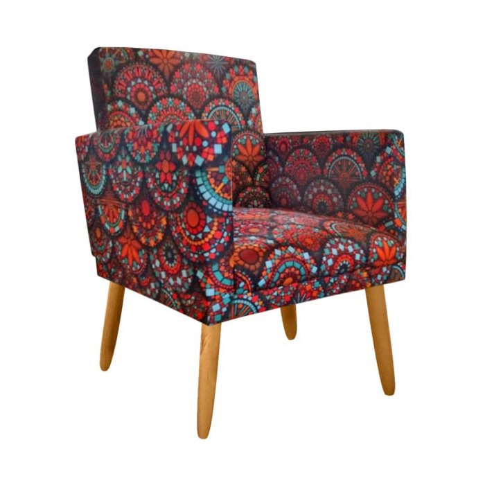 Poltrona Estampada Nina Mandala Preto para Ateliê Rodapé