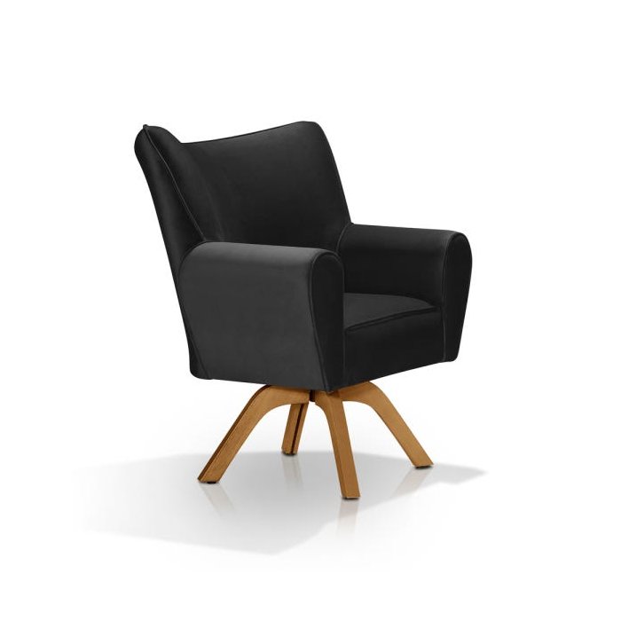 Poltrona Base de Madeira Giratória Nice, com revestimento em veludo, assento com molas ensacadas e com enchimento em espuma D28, pés em eucalipto e estrutura em eucalipto. Design moderno e arrojado que da charme e sofisticação ao seu ambiente, deixando sua sala ainda mais aconchegante.