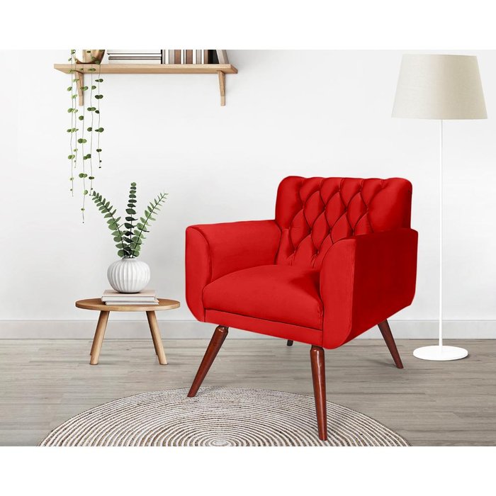 Poltrona Estofada Raquel Cia do Estofado - Vermelho Vermelho