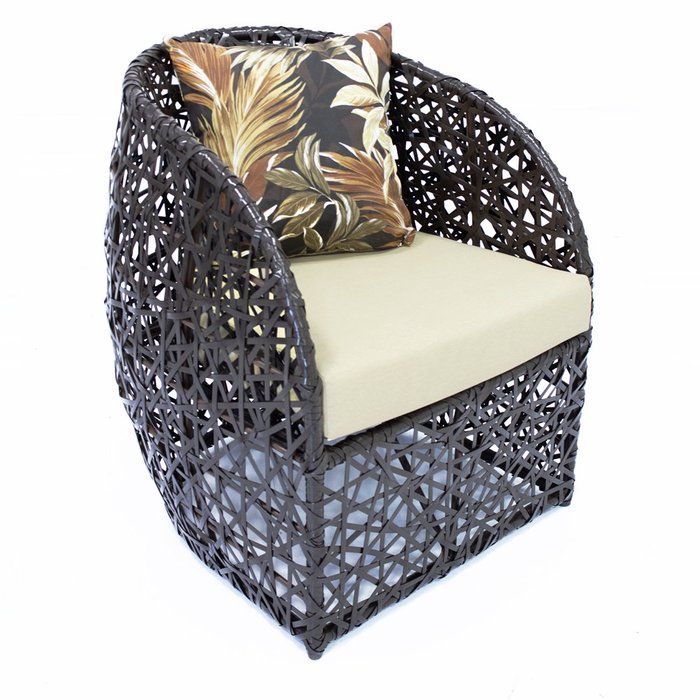 Poltrona Fibra Sintética e Alumínio de Sacada Piscina Jardim Fibra tabaco, Almofada de assento branca, Almofada de encosto estampada
